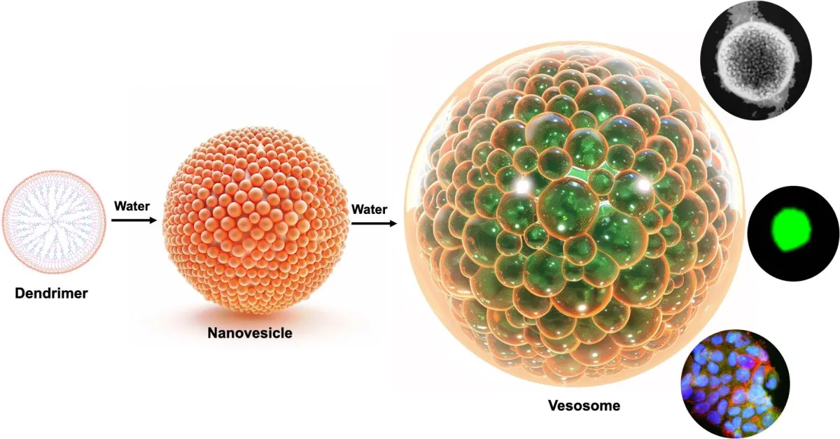 Unveiling Hierarchical Self-Assembly of Triazolylferrocenyl Dendrimers: Producing Non-Traditional Intrinsically Green Fluorescent Vesosomes for Nanotheranostics. Image